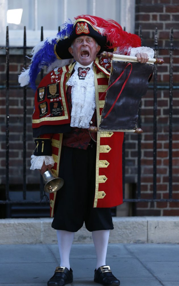 Tony Appleton, a town crier, announces the birth of the royal baby, outside St. Mary's Hospital exclusive Lindo Wing in London. (AP)