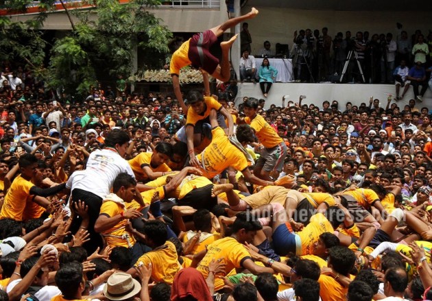 Mumbaikars celebrate Dahi Handi near Santacruz airport on Thursday. (Express photo by Prashant Nadkar)