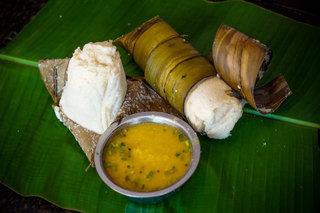 Khottige and mudde are essentially Idlis, but the former is steamed using a jackfruit leaf, and the latter a kedige (screw pine leaf). The end result is a soft, heavily fragrant Idli, which you have with tovey, a Goud-Saraswat-Brahmin Konkani style dal preparation. The tovey is made using copious amounts of asafoetida, and that gives it a wicked kick. New Taj Mahal Café, or Dosa Camp’s – Anmol. (Text: Colin D’Souza; Image: Nikhil Pai)