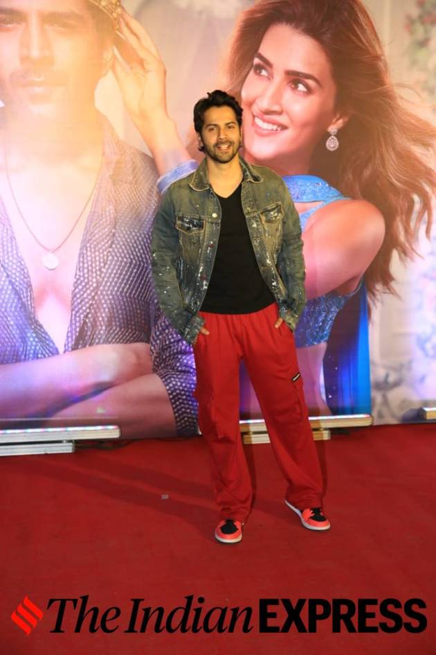 Varun Dhawan was at his casual best in a pair of red joggers, black tee, and denim jacket. (Photo: Varinder Chawla)