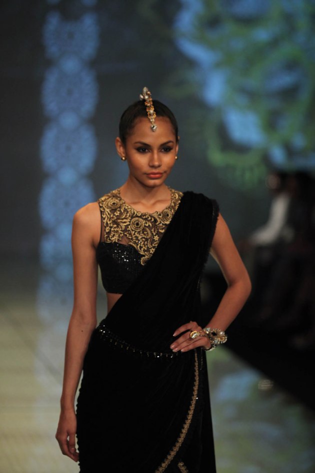 Tarun Tahiliani broke the convention by unfurling his black bridal ensemble on the opening day of the sixth edition of the BMW India Bridal Fashion Week (IBFW) 2014 Thursday. (Source: Express Photo by Tashi Tobgyal)