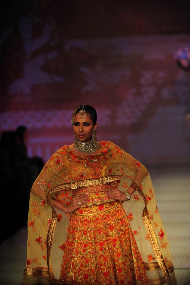A model showcases creations by Tarun Tahiliani on the first day of Indian Bridal Fashion Week (Express Photo by Tashi Tobgyal)