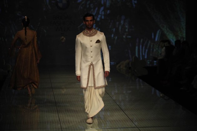 Models display creations by Designer Tartun Tahiliani during the opening show of the BMW Delhi Bridal Week in New Delhi on Thursday. (Source: Express Photo by Tashi Tobgyal)