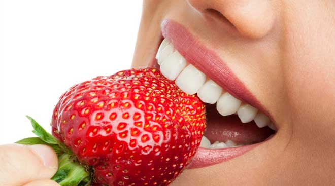 Mash up a ripe strawberry, dip your toothbrush in it and brush carefully over teeth. Within two weeks, your teeth will be whiter. So choose a really ripe strawberry, rub it on your teeth and just like exfoliating the skin, it does remove superficial debris (Source: Thinkstock Images)