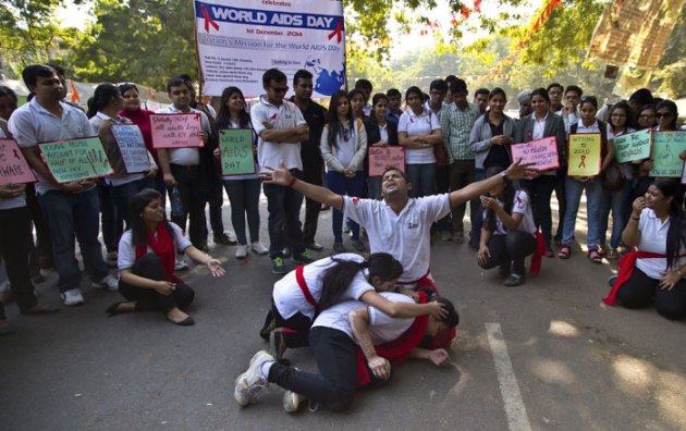 Students prepare a street play to create awareness of the dangers of HIV infections and ways to prevent it on the occasion of World AIDS Day in New Delhi, India. World AIDS Day is marked on Dec. 1 every year to raise awareness about HIV/AIDS. (Source: AP)