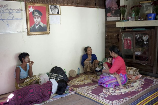 Phyu Phyu Thin, right, a parliament member of Myanmar opposition leader Aung San Suu Kyi's National League for Democracy party, holding a child, talks with HIV patients under a portrait of Gen. Aung San, the father of Suu Kyi, on the wall at her HIV/AIDS Care Center on the outskirts of Yangon, Myanmar. There are about 200,000 HIV patients in Myanmar out of which about 125,000 patients require the lifesaving antiretroviral treatment. According to a health ministry official only about 87,500 of them received the ART treatment. (Source: AP)