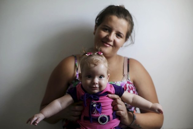 Talita Araujo da Silva, 23, poses with Heloa Vitoria, 4-months old, who is her second child and born with microcephaly. (Photo: Reuters)