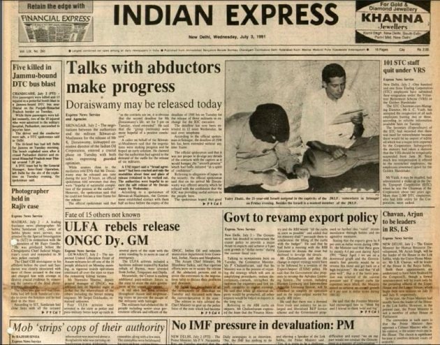 A look at the front page of the Indian Express on July 2, 1991, announcing the devaluation.
