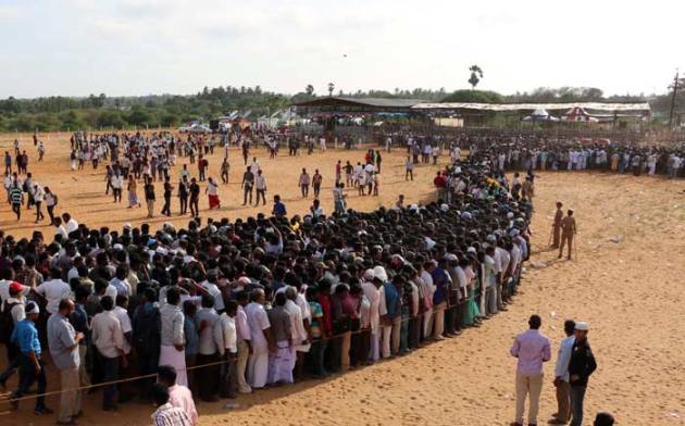 People waiting in a long queue to pay their respects to former President APJ Abdul Kalam at public view ground in Rameswaram. (Source: AP)