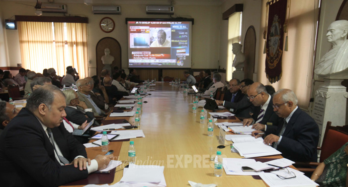 IMC members watch the budget presentation with rapt attention. (Source: Express photo by Vasant Prabhu)