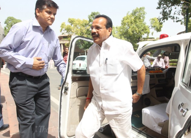 Railway Minister Sadanand Gowda arrives for the presentation of Union Budget. (Source: Express photo by Prem Nath Pandey)