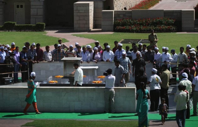 AAP chief Kejriwal reached Rajghat in New Delhi today to pay homage to Mahatma Gandhi. (Express photo: Oinam Anand)