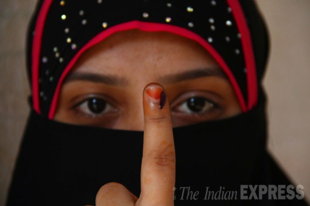 Muslim women also turned out to vote. (Source: Express Photo by Amit Chakravarty)