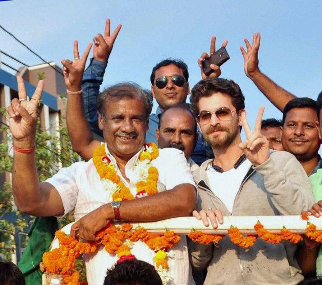 Bollywood actor Niel Nitin Mukesh campaigns for Biju Janata Dal candidate in Bhubaneswar on Tuesday. (PTI)