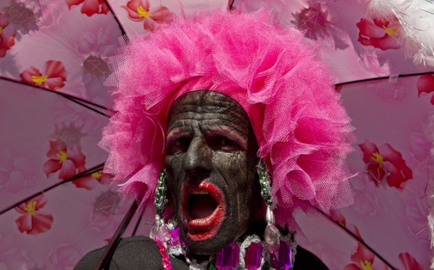 A transvestite gestures during the Gay Pride Parade in Avenida Paulista in Sao Paulo. (Reuters)