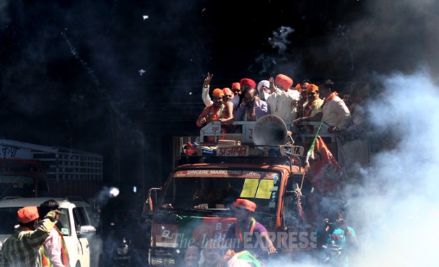 On the last day of campaign, all the top players – BJP, Congress and AAP held scores of roadshows, rallies and public meetings to woo the 1.27 crore voters. A total of 150 candidates are in the fray. (IE Photo: Ravi Kanojia)