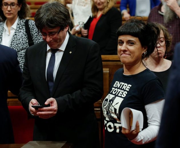 In response to Carles Puigdemont's negotiation dialogues with the Spanish government, Leftist CUP party member Anna Gabriel was quoted by news agency Reyters on Wednesday saying: "You say we are suspending the effects because we are going to negotiation and mediation. Negotiation and mediation with whom? With a Spanish state that continues to harass and persecute us?” (Source: Reuters)