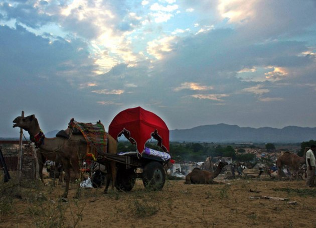 Pushkar offers some great views during sunset. In this picture, a camel rests at the Pushkar Fair ground. (Source: Express photo by Abhimanyu Chakravorty)
