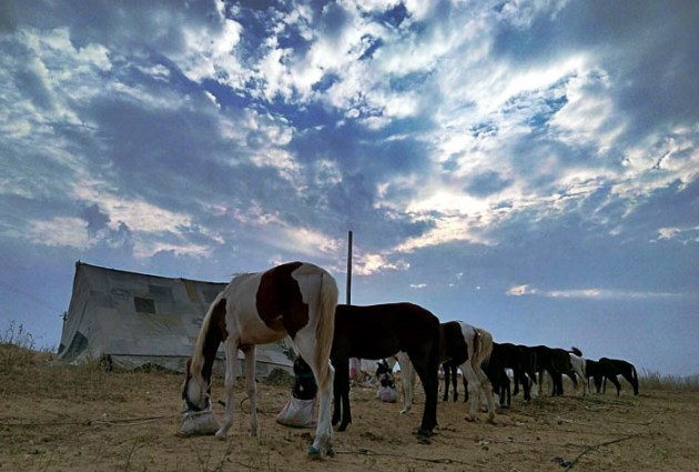 Pushkar is one of the oldest cities of India renowned for its Brahma temple that can only be found here. In this picture, horses are tied together as they feed on hay and oats in Pushkar. (Source: Express photo by Abhimanyu Chakravorty)