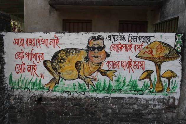War of Words on the wall between TMC and BJP at Sreerampore in Hoogly on Lok Sabha election 2014 campaign. Bappi Lahiri is the BJP and Kalyan Bandyopadhyaya is the TMC candidate. (Express photo by Subham Dutta)