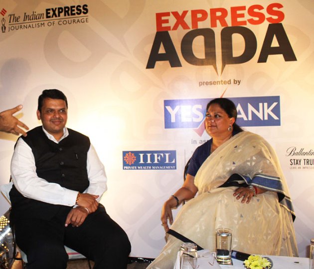 Fadnavis and Raje on stage at the Adda. (Source: Express photo)