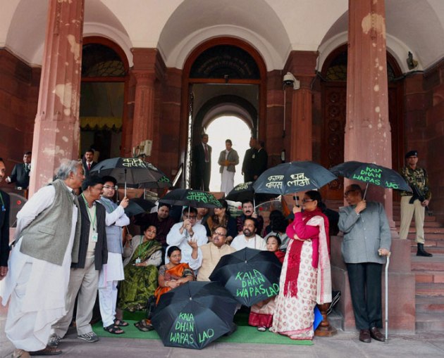 Opposition leaders protest over black money issue during the winter session of Parliament in New Delhi on Tuesday. (Source: PTI)