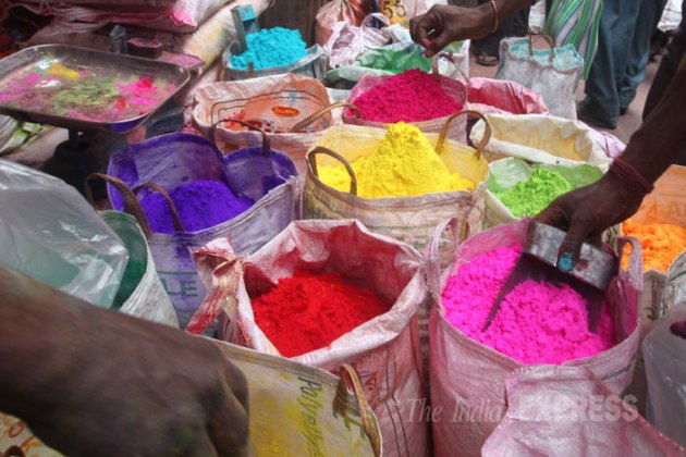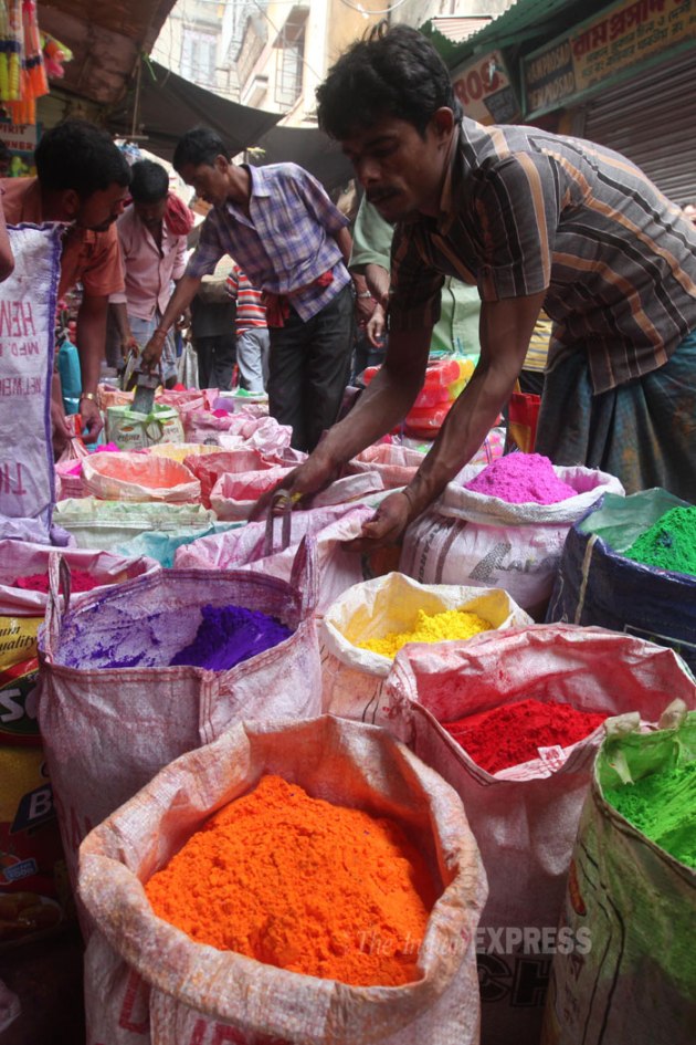 Vendors sell gulaal. (IE Photo: Partha Paul)