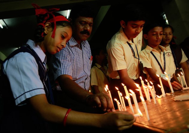 Indian school children and officials light candles in memory of victims killed in a Taliban attack on a military-run school in Peshawar, at a school in Mumbai on Wednesday (December 17). (Source: AP)