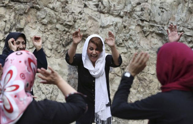 The Laughter Yoga course in Tehran helps people from various age groups and social backgrounds to have fun and take a break from stressful daily lives. (Source: AP)