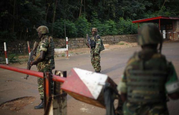 African Union troops from Burundi guard the entrance of the Camp le Roux after Seleka Muslim militia evacuated it in Bangui, Central African Republic, on Monday to relocate and join other Selekas at the PK11 camp. The clearing out of Camp de Roux — normally the army's main base in the capital — comes more than two weeks after rebel leader-turned-president Djotodia surrendered power amid mounting international condemnation of his inability to stop sectarian bloodshed. A new interim civilian government has pledged to halt the violence and attempt to organize elections no later than February 2015. (AP Photo)