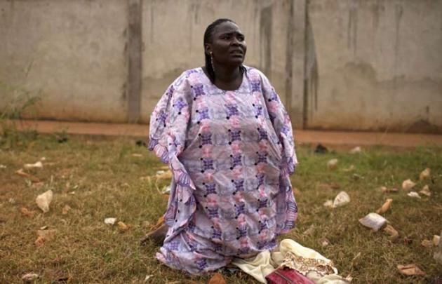 A Muslim woman reacts while repeated gun shots are heard near Miskine district during continuing sectarian violence in Bangui. (Reuters)