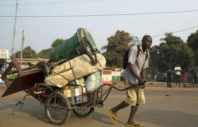 A man flees with his belongings during continuing sectarian violence in Miskine district of Bangui. At least 13 people were killed in mob violence in Central African Republic's capital, Bangui, over the past 48 hours as senior officers from the Seleka rebel movement fled the city. (Reuters)