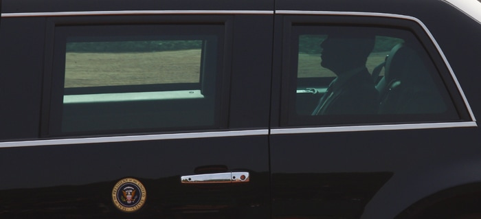 US President Barack Obama arrives in his car for the ceremonial welcome at the Rashtrapati Bhawan in New Delhi on Jan 25th 2015. (Source: Express photo by Neeraj Priyadarshi)