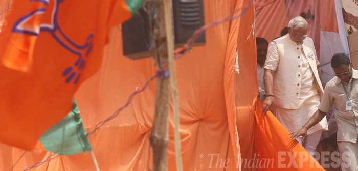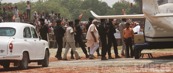 Narendra Modi leaves from Azamgarh. (IE Photo: Neeraj Priyadarshi)