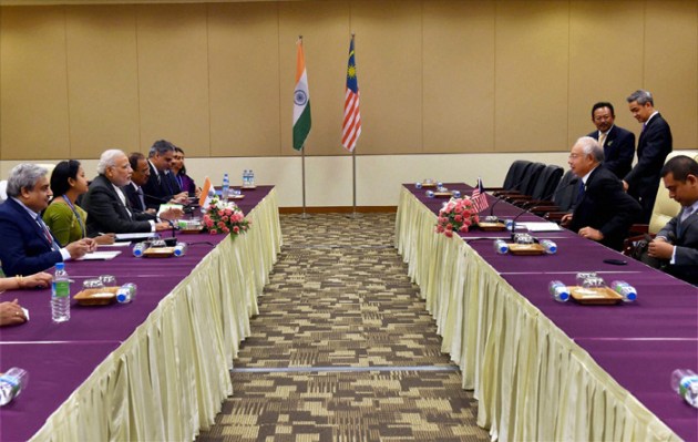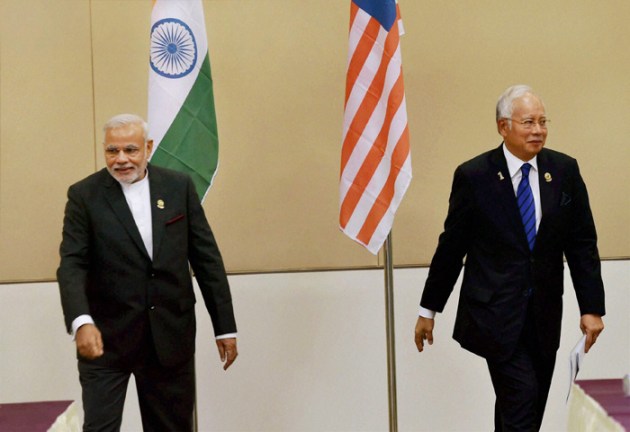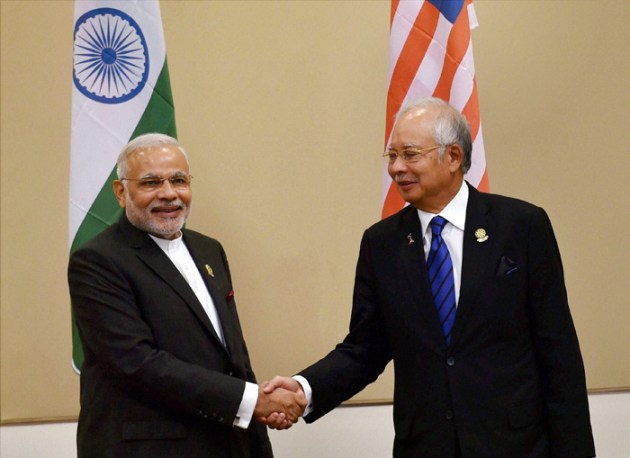 Prime Minister Narendra Modi with Malaysian Prime Minister Najib Tun Razak during a meeting at Nay Pyi Taw in Myanmar on Wednesday. (Source: PTI)