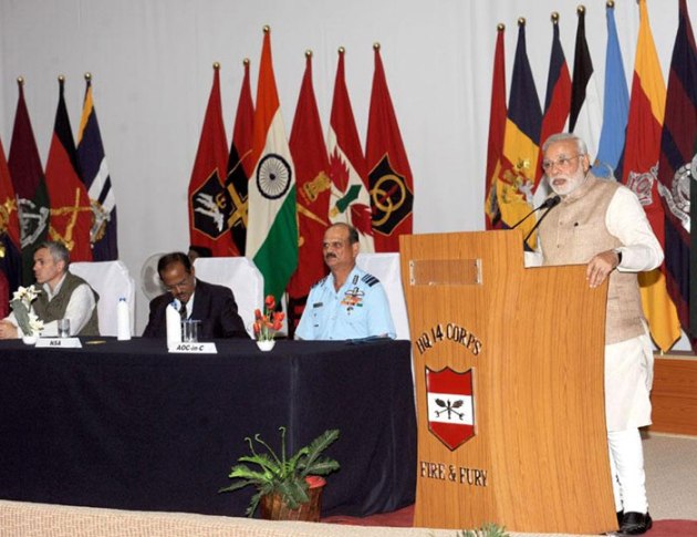 Narendra Modi addresses the officers, soldiers and air warriors of the Indian Armed Forces. (Source: @PIB_India)