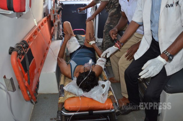 An injured is taken for treatment after Maoists attacked a CRPF search party near Tongpal in Sukma district of Chhattisgarh on Tuesday morning. (PTI)