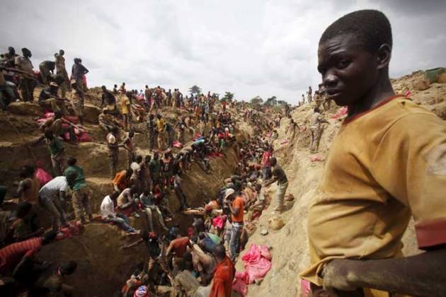 Prospectors search for gold at a gold mine near the village of Gamina, in western Ivory Coast, March 18, 2015. Picture taken March 18, 2015. (Source: Reuters)