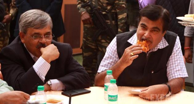 Union minister Nitin Gadkari during the Diwali Milan at BJP Head office in new Delhi on Saturday. (Source: Express photo by Prem Nath Pandey)