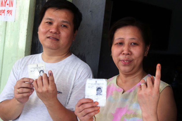 A couple outside Pei Mei Chinese School polling booth in Chinatown, Kolkata. ( Source: Express photo by Partha Paul )
