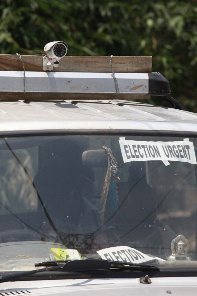 Live Monitoring of Sensitive Area vehicle stands infront of a polling booth in Berhampore. ( Source: Express photo by Subham Dutta )