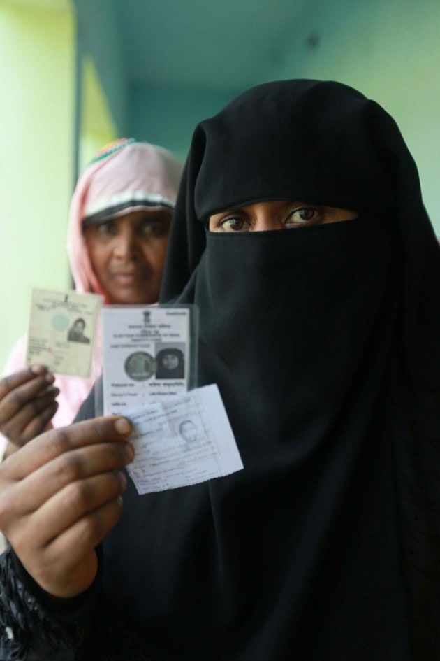 Muslim voters show their voter's identity card. ( Source: Express photo by Subham Dutta )
