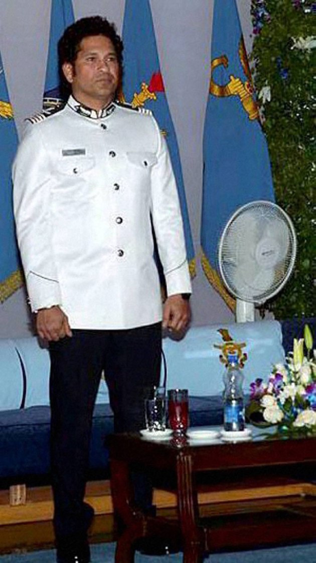 Cricket legend and honorary Group Captain Sachin Tendulkar at the 'At Home' hosted on the occasion of 82nd Anniversary of Indian Air Force at Air House in New Delhi on Wednesday. (Source: PTI)