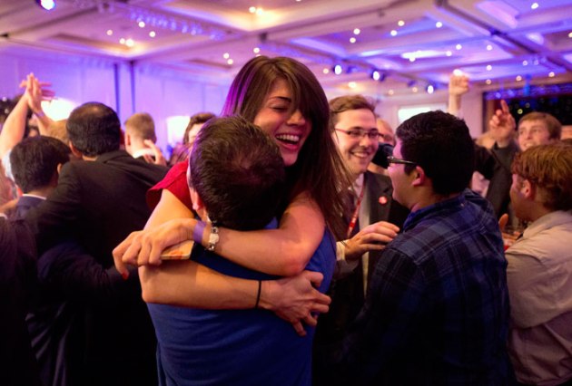 After a historic referendum that shook Scotland, Scottish voters have rejected independence, deciding to remain part of the United Kingdom. Supporters of the 'No campaign' celebrate after the result was announced at a hotel in Glasgow, Scotland on Friday (September 19). (Source: AP)