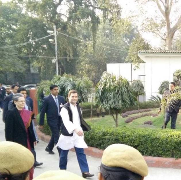 Sonia and Rahul Gandhi arriving at the Patiala House court for the first hearing in the National Herald case. (Source: Twitter/@NaveedIqbal)