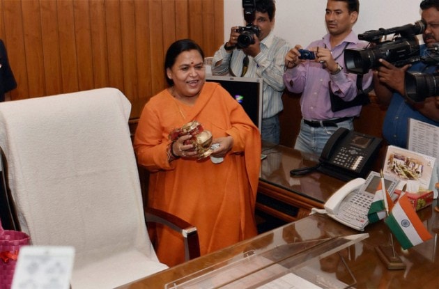 Uma Bharti takes charge as the Union Minister for Water Resources, River Development and Ganga Rejuvenation in New Delhi. (Source: PTI)
