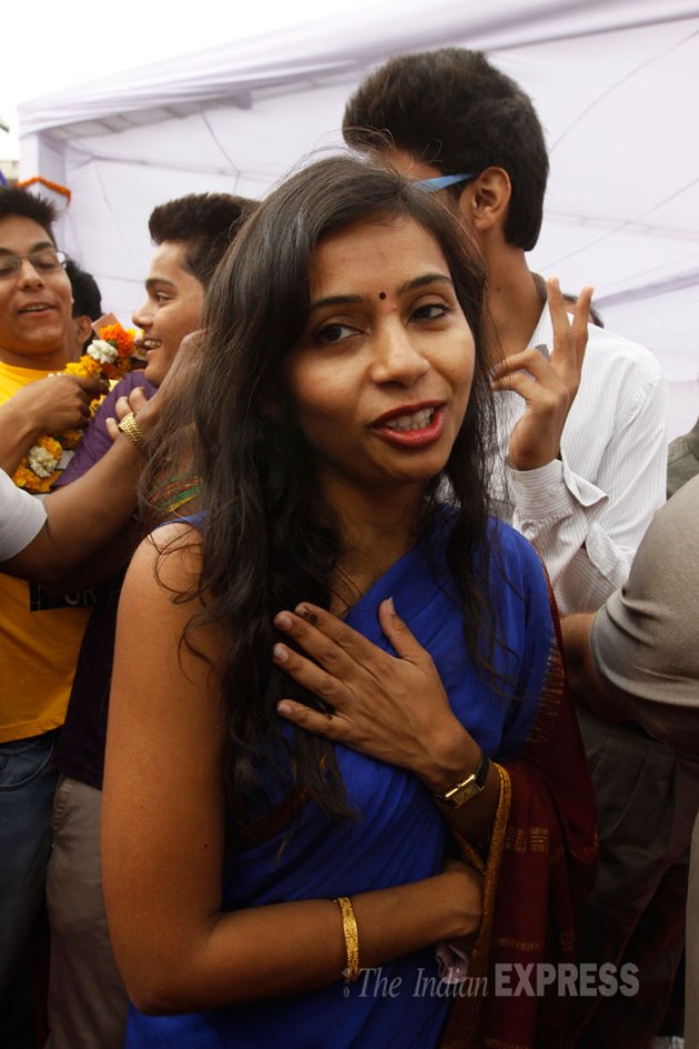 Indian diplomat Devyani Khobragade during the Dr. Ambedker Birth Anniversary at Parliament. (IE Photo: Renuka Puri)