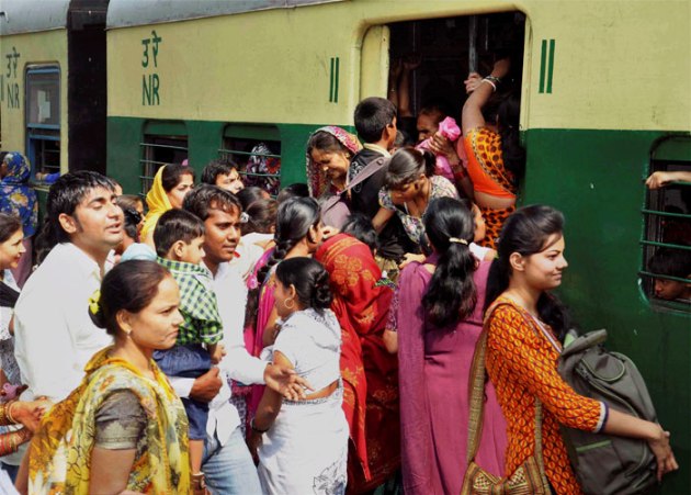 People trying to board a passenger train as they struggle to visit their native places to celebrate Chatt puja" festival at Fridabad railway staion on Sunday. (Source: PTI Photo)