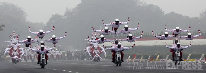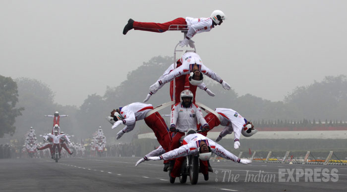 Soldiers perform during Amry Day parade in New Delhi. (IE Photo: Amit Mehra)