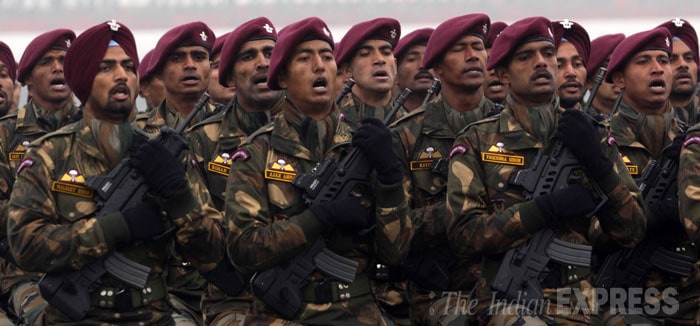 Jawans march during the Army Day parade at Delhi Cantt in New Delhi. (IE Photo: Amit Mehra)